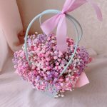 Лента атласная – 1 шт.Сумочка – 1 шт.Флористическая губка – 1 шт.радужная гипсофила – 5 шт.