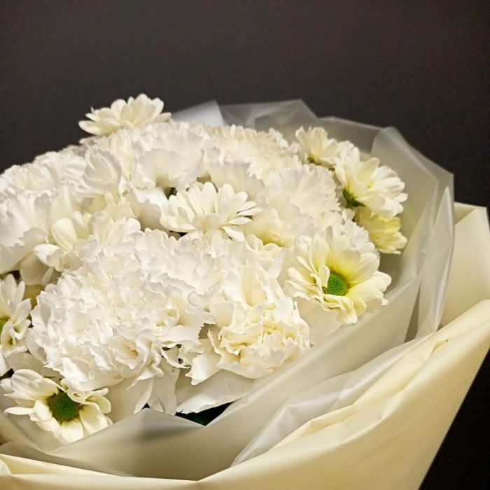Букет из белой гвоздики и сантини