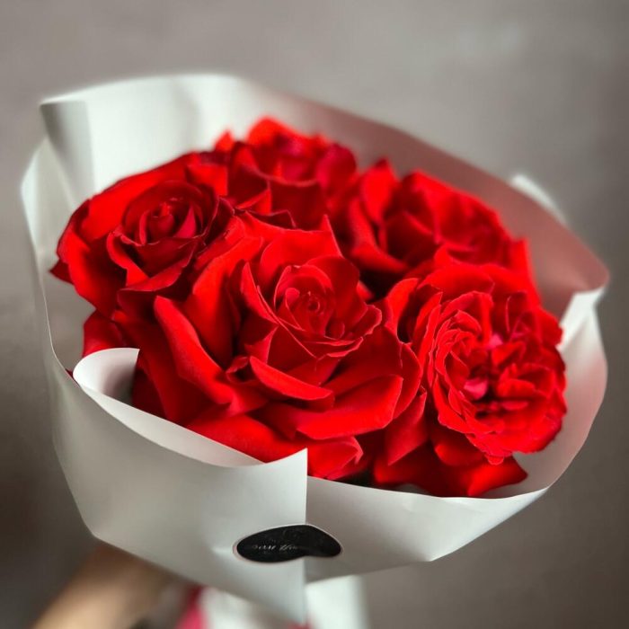 декоративная упаковка – 1 шт.Атласная лента – 1 шт.Роза Нина – 5 шт.