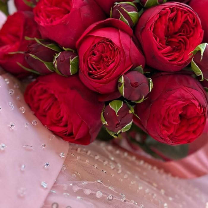 Пионовидная роза – 11 шт.Атласная лента – 2 шт.