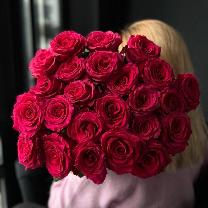 розы одноголовые – 25 шт.Атласная лента – 1 шт.